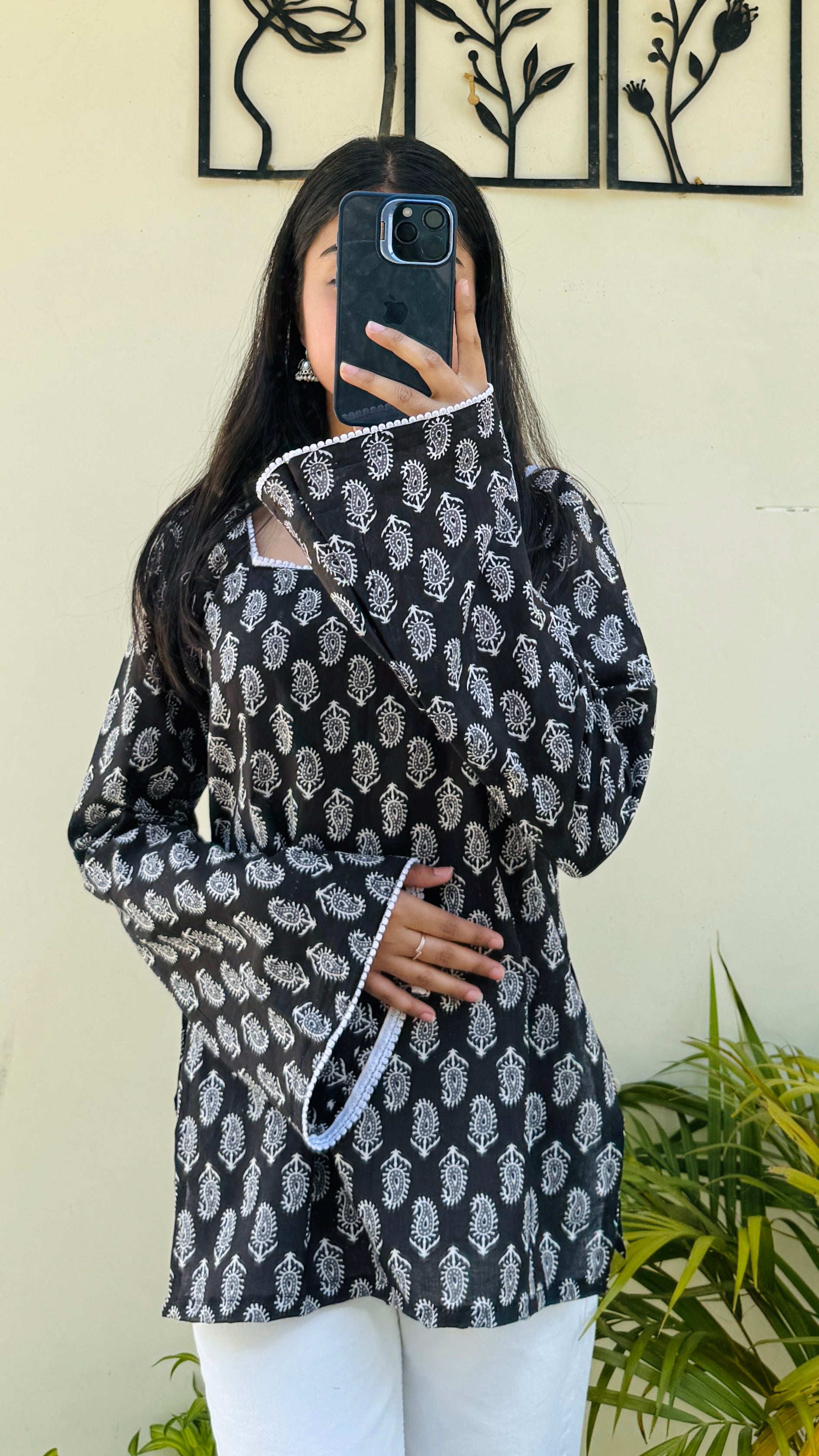 Cotton Square Neck Lace detailing Bellsleeve Short Kurti